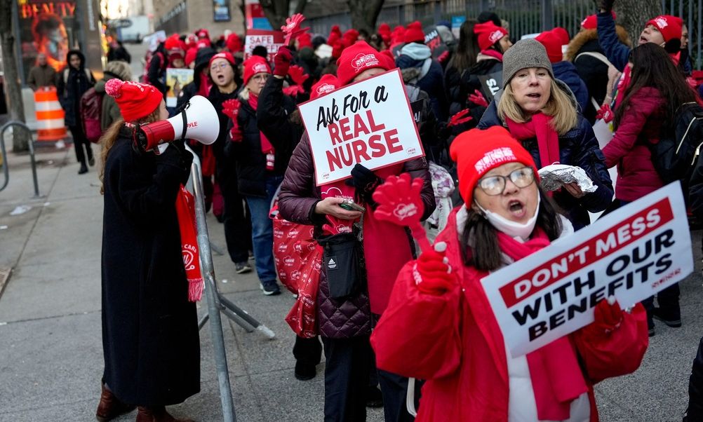 Την Παρασκευή, δεκάδες νοσηλευτές συγκεντρώθηκαν στο Μανχάταν για να διαμαρτυρηθούν, λέγοντας ότι επικεντρώνονται στη φροντίδα των ασθενών και κατηγορώντας τα νοσοκομειακά συστήματα, των οποίων τα κορυφαία στελέχη κερδίζουν εκατομμύρια ετησίως, ότι δίνουν προτεραιότητα στο κέρδος και αρνούνται να συμβιβαστούν.
