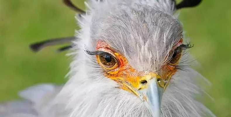 Το παράξενο πτηνό Secretary (Sagittarius Serpentarius) ανήκει στην κατηγορία των μεγάλων αρπακτικών πουλιών και είναι συγγενές με τα γεράκια και τους αετούς. Ένα από τα πιο ξεχωριστά χαρακτηριστικά του πτηνού είναι οι εκθαμβωτικές μακριές βλεφαρίδες του, που είναι άκρως εντυπωσιακές.