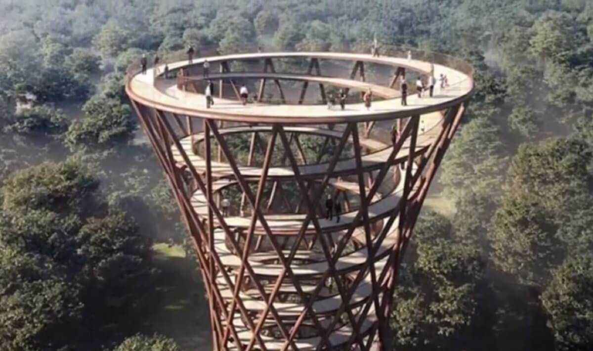 Ο μαγευτικός πύργος στη Δανία έχει μια διαδρομή μήκους 900 μέτρων μέσα στο δάσος, με μια σειρά ανηφορικών μονοπατιών, προσφέροντας στους επισκέπτες θέα 360 μοιρών σε δέντρα, λόφους, λίμνες και λιβάδια.
