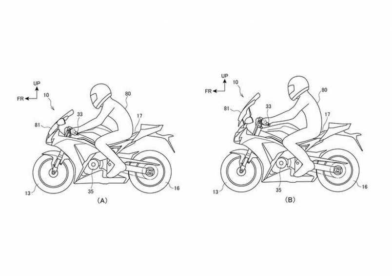 Στα σχετικά σχέδια, “πειραματόζωο” αποτελεί ένα CBR1000RR Fireblade, στο οποίο και έχουν εφαρμοστεί τα δύο συστήματα που συνιστούν την πατέντα. Δεν μιλάμε για hi-tech καταστάσεις, αντιθέτως, πρόκειται για πολύ απλές μηχανικές λύσεις.