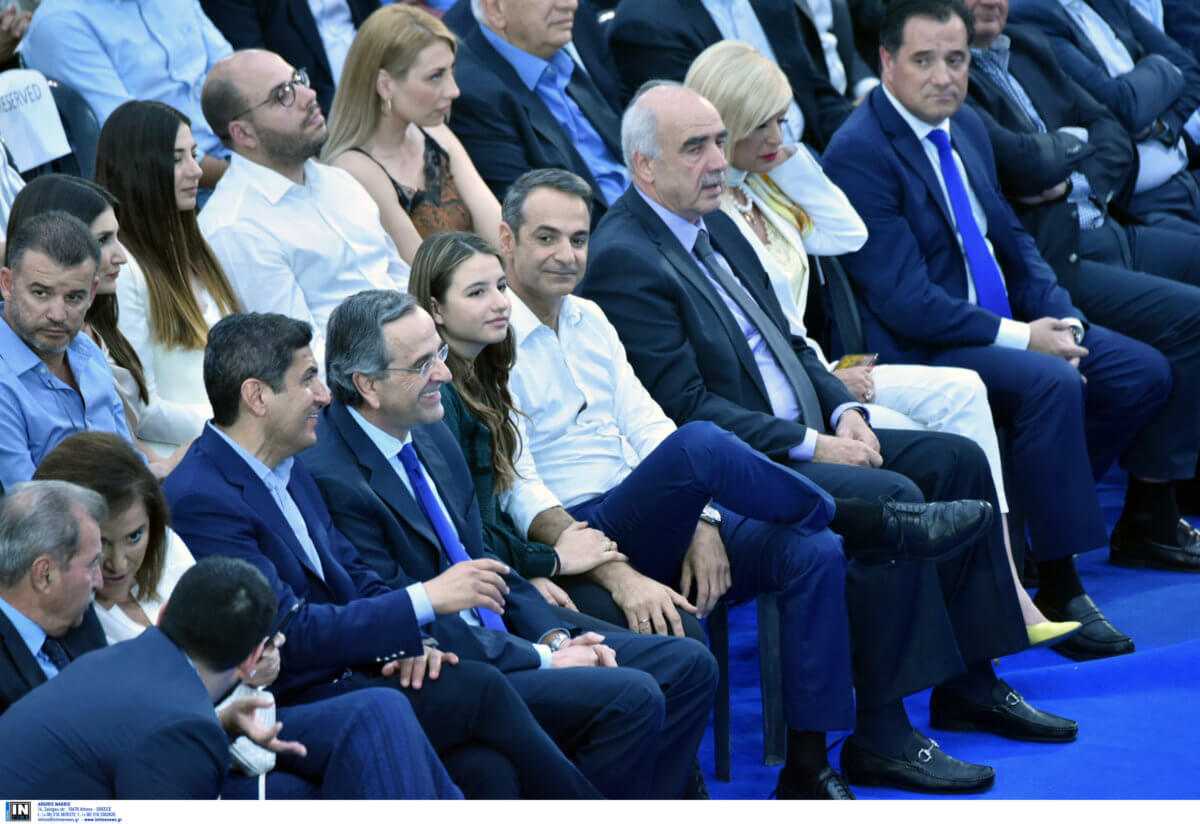 Στο κατάμεστο «Ανδρέας Παπανδρέου», στο Περιστέρι, βρίσκονταν μια σειρά από πρωτοκλασάτα στελέχη της ΝΔ, αλλά και δύο πρώην πρωθυπουργοί, ο Κώστας Καραμανλής και ο Αντώνης Σαμαράς.