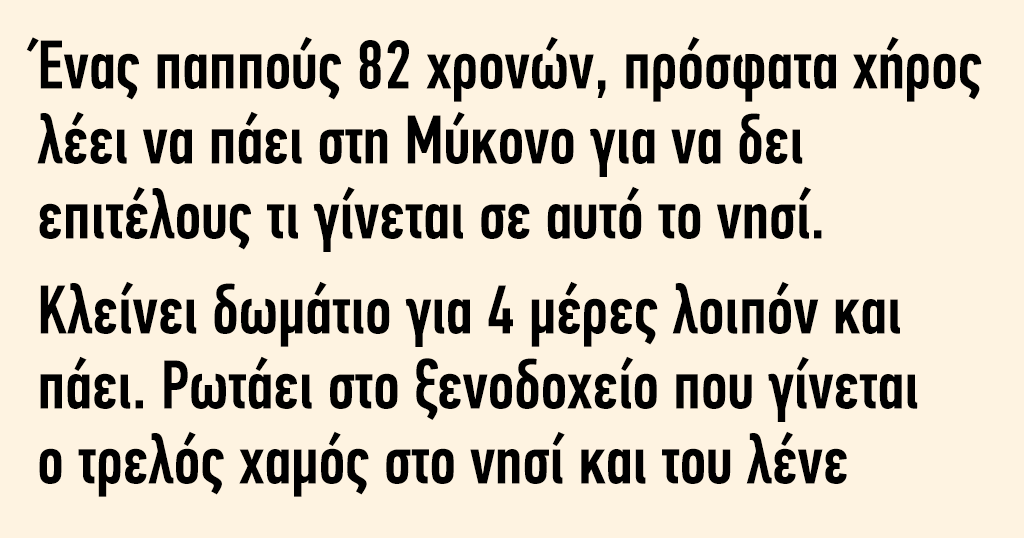 Είναι ένας παππούς και πάει στη Μύκονο 7 Μαΐου 2019 09:18 FacebookTwitterTelegramViberWhatsAppLinkedinEmail Είναι ένας παππούς και πάει στη Μύκονο FacebookTwitterTelegramViberWhatsAppLinkedinEmail Προηγούμενο άρθροΓυναίκα χωρίς όνομα: Σοκ για την Μαρίνα! Ο κίνδυνος και μια απόφαση που θα αλλάξει τη ζωή τηςΕπόμενο άρθροΓαλλία: Σε δίκη ο «μάνατζερ του τρόμου» – Κατηγορείται πως οδήγησε στην αυτοκτονία 35 εργαζόμενους Μπορεί να σας αρέσουν Ανέκδοτα 45αρης “καυτός” σε ανέκδοτο: “Έτσι βγαίνει ένα διαζύγιο” 25 Νοεμβρίου 2025 20:18 Ανέκδοτα Βουνίσιος βοσκός σε ανέκδοτο: Δεν έβρισκε λύση… 25 Νοεμβρίου 2025 17:18 Ανέκδοτα Ξανθιά γειτόνισσα σε ανέκδοτο “Γιατί κοκκινίζουν;” 25 Νοεμβρίου 2025 13:54 Αφήστε ένα μήνυμα Σχόλιο: εισάγετε το σχόλιό σας! Όνομα: παρακαλώ εισάγετε το όνομά σας εδώ Email: έχετε εισάγει εσφαλμένη διεύθυνση ηλεκτρονικού ταχυδρομείου! παρακαλώ εισάγετε εδώ την ηλεκτρονική σας διεύθυνση Ιστοσελίδα: αποθηκεύστε το όνομα, το ηλεκτρονικό ταχυδρομείο και τον ιστότοπό μου σε αυτό το πρόγραμμα περιήγησης για την επόμενη φορά που θα σχολιάσω.