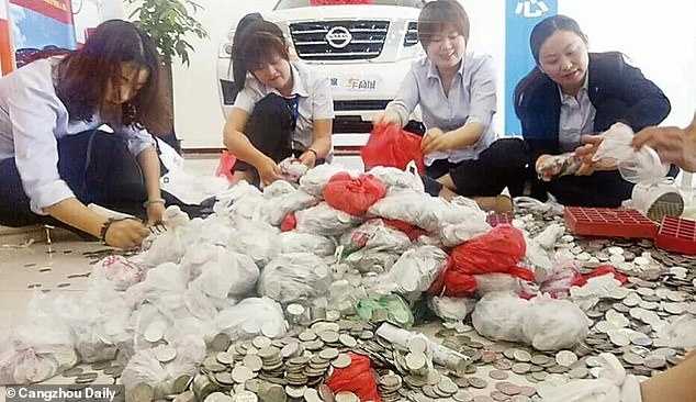 Αντιμέτωποι με ένα απίστευτο περιστατικό ήρθαν αντιμέτωποι οι υπάλληλοι μιας αντιπροσωπείας αυτοκινήτων στην Κίνα, όταν μια πελάτισσα πήγε να πληρώσει το αυτοκίνητο που ήθελε να αγοράσει με 66 σακούλες γεμάτες κέρματα.