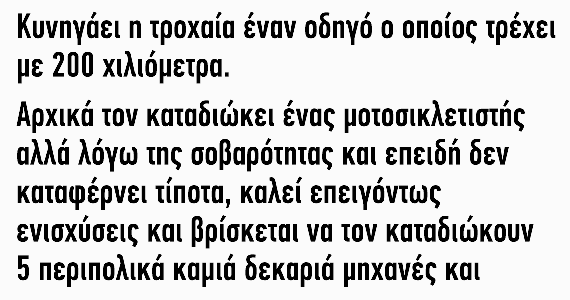 Κυνηγάει η τροχαία έναν οδηγό ο οποίος τρέχει με 200 χιλιόμετρα