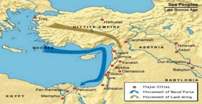 Μια ομάδα έφθασε στις αρχές της ιστορικής περιόδου και εγκαταστάθηκε στη Γάζα. Μια άλλη ομάδα, προήλθε από την Κρήτη αφού είχε πρώτα απωθηθεί από τον Ράμσι ΙΙΙ το 1194 π.Χ. από μια απόπειρα εισβολής που είχαν κάνει στην Αίγυπτο. Αυτή η ομάδα των Κρητών κατέλαβε τη νότια παράκτια περιοχή, όπου ίδρυσαν πέντε πόλεις στην παράκτια πεδιάδα.