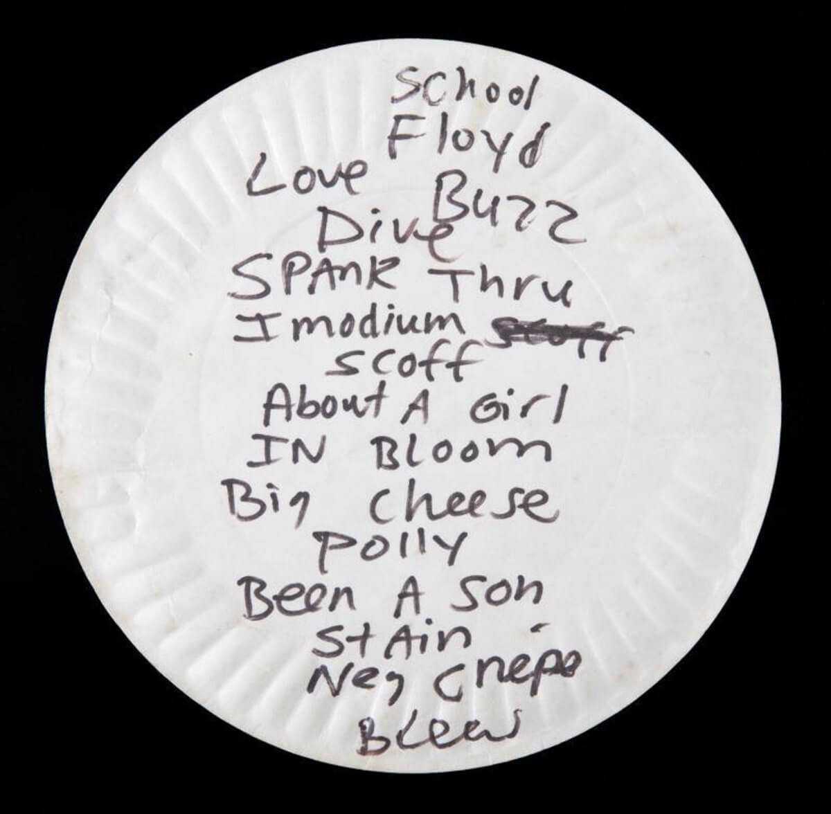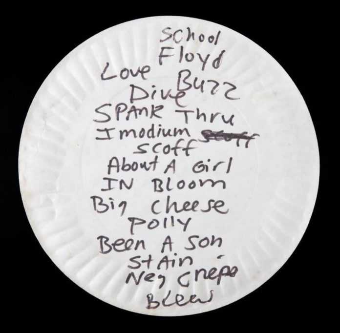Ο αρχηγός των Nirvana είχε φάει πίτσα από το πιάτο το 1990 και στη συνέχεια το γύρισε και έγραψε μία setlist στο πίσω μέρος με μαρκαδόρο.