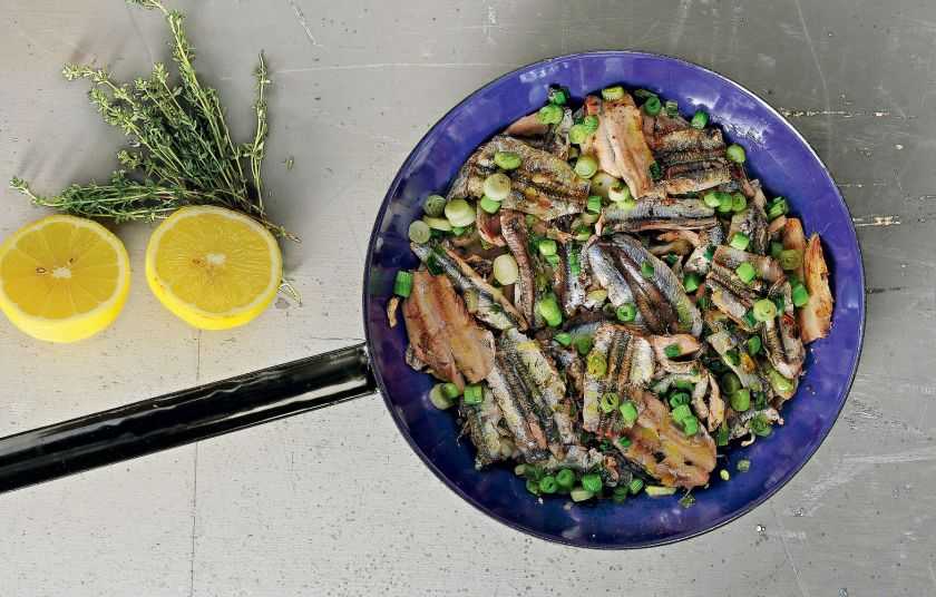 Ανοιξιάτικη τηγανιά με γαύρο, κρεμμυδάκι και θυμάρι