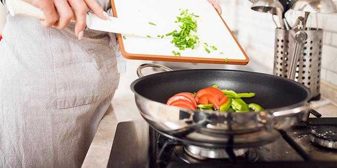 Η μέθοδος του stir-frying βασίζεται σε αυτή τη λογική: Μικρά κομμάτια λαχανικών και κρέατος που μαγειρεύονται στο τηγάνι πολύ πιο γρήγορα. Επίσης, μια καλή εναλλακτική αν δεν έχεις τηγάνι γουόκ, είναι να χρησιμοποιείς ένα φαρδύ, ρηχό τηγάνι. Μοιράζει την θερμότητα καλύτερα, το φαγητό απλώνεται, όλα γίνονται πιο γρήγορα.