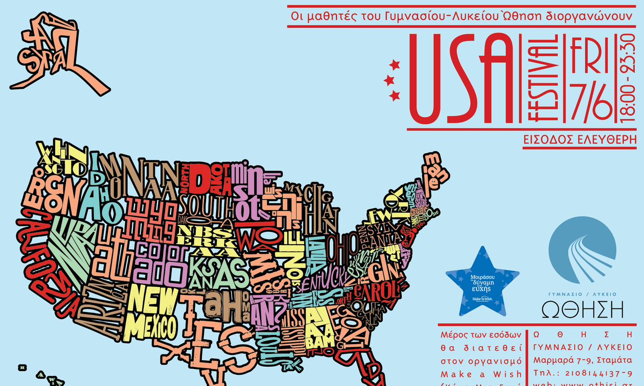 Για 4η συνεχή χρονιά, οι μαθητές του Γυμνασίου Λυκείου «ΩΘΗΣΗ» διοργανώνουν ένα πολιτισμικό φεστιβάλ για τη γιορτή λήξης του σχολικού έτους. Έπειτα από την Αφρική, τη Λατινική Αμερική και την Κίνα στις οποίες “στάθμευσαν” τις προηγούμενες χρονιές, φέτος διοργανώνουν μια γιορτή που μας… μεταφέρει στις ΗΠΑ