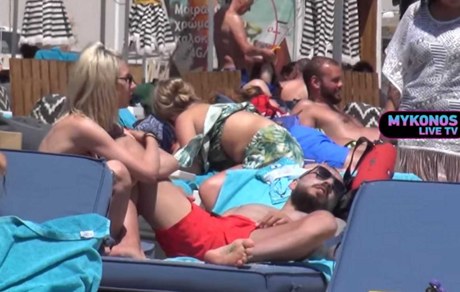 Όπως θα δείτε στα πλάνα του Mykonos Live TV, ο Έλληνας στράικερ χαλαρώνει σε ξαπλώστρα του beach restaurant Kuzina στον Όρνο, χωρίς να τον απασχολεί το ποδοσφαιρικό του μέλλον, μετά την δήλωση του προπονητή του τουρκικού συλλόγου ότι δεν τον υπολογίζει στα πλάνα του για την νέα χρονιά.