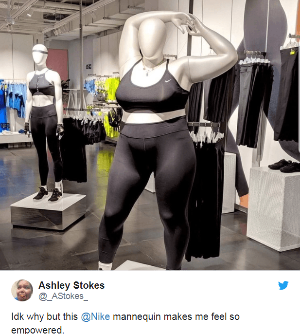Ο παγκόσμιος κολοσσός αθλητικών ειδών όπως η NIKE αποκάλυψε μια νέα σειρά από κούκλες βιτρίνας, εντελώς διαφορετικές από αυτές που έχουμε συνηθίσει να βλέπουμε στα καταστήματα, αφού το σώμα παραπέμπει σε εικόνα plus-size μοντέλων, έχοντας καμπύλες.