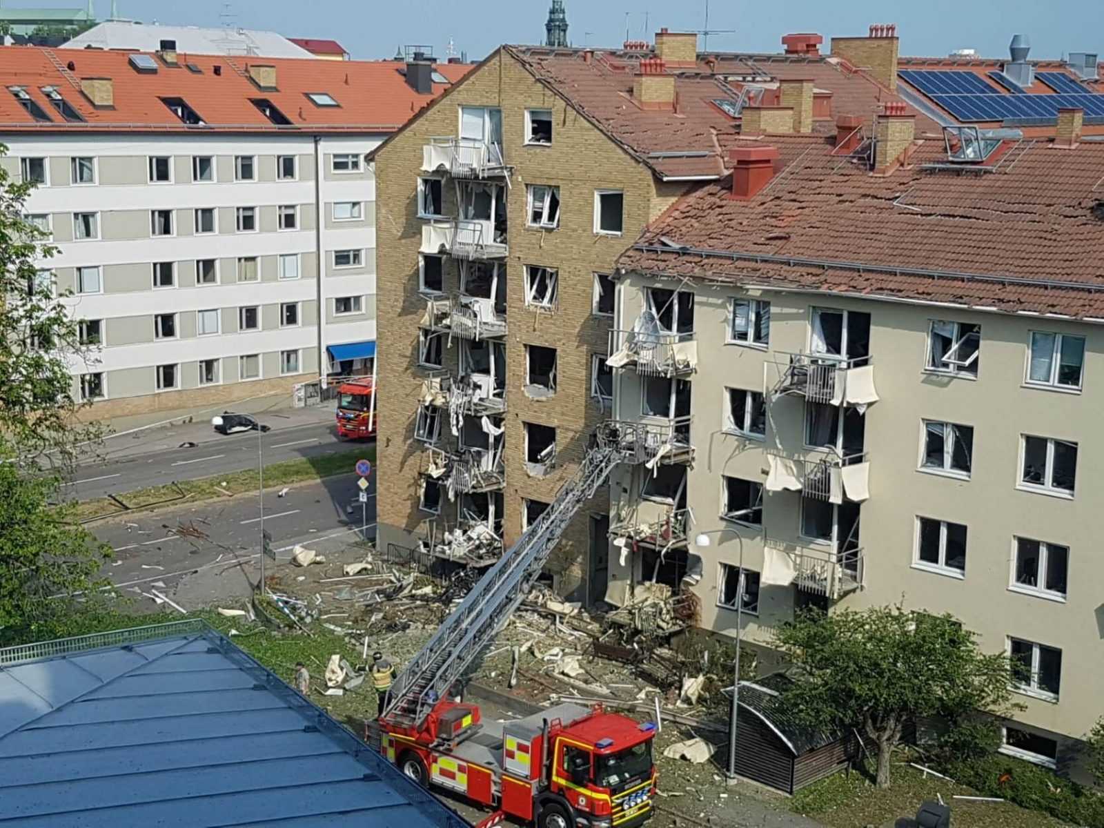 Η σουηδική δημόσια ραδιοφωνία ανέφερε πως μια τεράστια έκρηξη κατέστρεψε παράθυρα και μπαλκόνια σε ένα πενταώροφο κτίριο κατοικιών και προκάλεσε ζημιές και σε γειτονικά κτίρια.