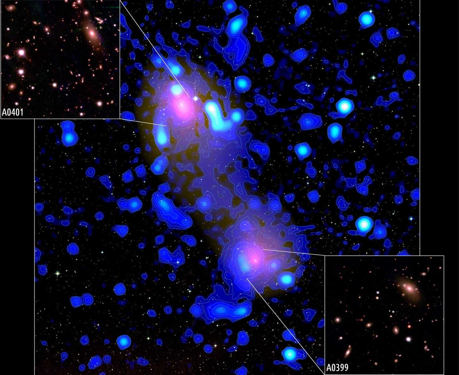 Το εν λόγω διαστημικό παρατηρητήριο, που ειδικεύεται στην ανίχνευση μεγάλων χαμηλής συχνότητας ραδιοκυμάτων, εντόπισε μια περίεργη ραδιο-γέφυρα ανάμεσα στα σμήνη γαλαξιών Abel 0399 και Abell 0401, τα οποία απέχουν περίπου δέκα εκατομμύρια έτη φωτός μεταξύ τους, αλλά πλησιάζουν συνεχώς, καθώς βρίσκονται σε φάση σταδιακής συγχώνευσης τους.