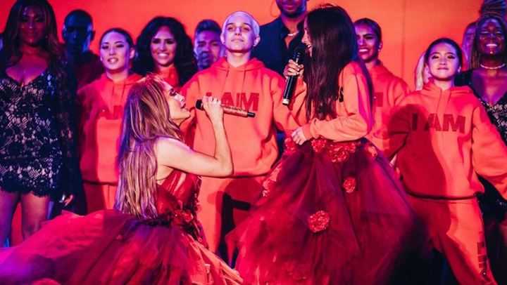 Αυτή τη φορά η Jennifer Lopez, μοιράστηκε με τους followers της ένα βίντεο, στο οποίο η Emme ντυμένη με τα ίδια ρούχα με τη μητέρα της, την συνόδευσε στη σκηνή και τραγούδησαν μαζί, με την υπερήφανη μανούλα να γονατίζει μπροστά στα πόδια της από χαρά.