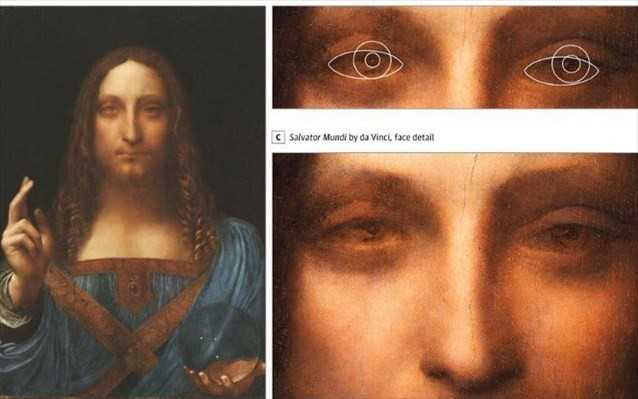 Τα μάτια του φημισμένου Σαλβατόρ Μούντι, Σωτήρα του Κόσμου, έργο το οποίο κάποιοι εικάζουν ότι περιέχει αυτοπροσωπογραφία του καλλιτέχνη, δείχνουν, επίσης, τις αποκλίνουσες κόρες των ματιών, όπως διαπιστώνεται στη μελέτη.