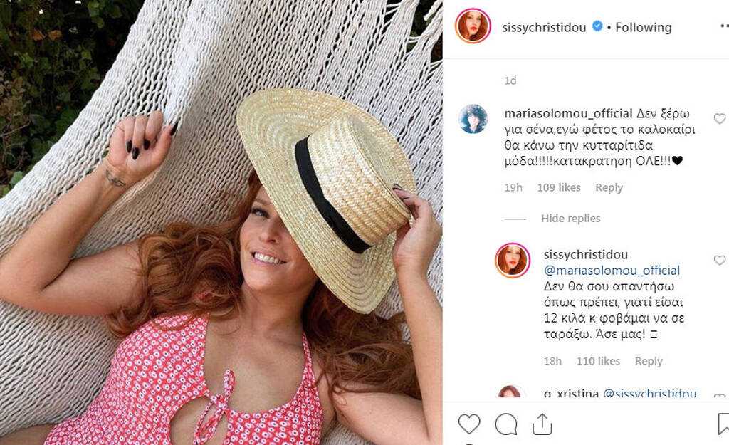 Την πρώτη φωτογραφία με μαγιό για φέτος το καλοκαίρι «ανέβασε» η Σίσσυ Χρηστίδου το μεσημέρι της Πέμπτης (12-06) και έγινε στόχος σχολιασμού ακόμη και από την Μαρία Σολωμού.