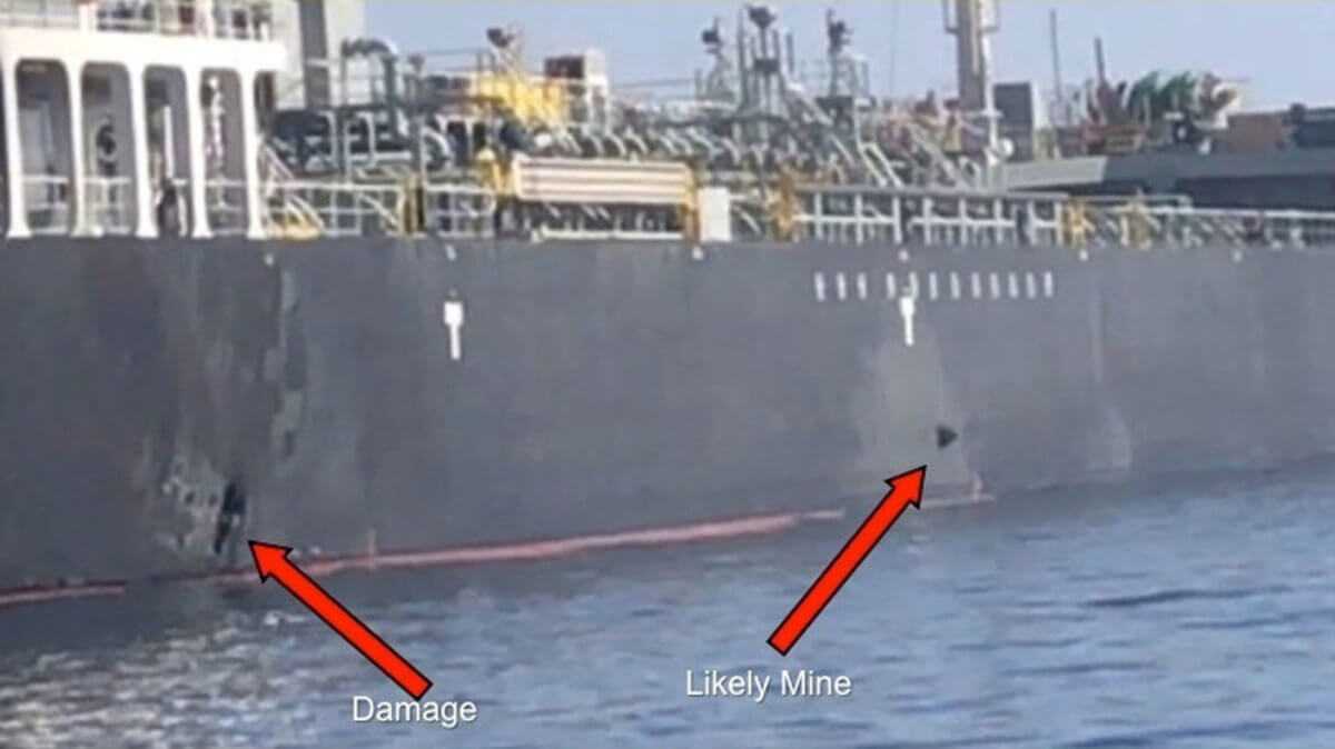 Στο video φαίνεται ένα μικρότερο σκάφος να πλησιάζει το ιαπωνικό τάνκερ Kokuka Courageous. Ένας άνδρας στέκεται στην άκρη του μικρού σκάφους και φαίνεται να αφαιρεί άγνωστο αντικείμενο από το δεξαμενόπλοιο. Κατά τις ΗΠΑ, το αντικείμενο αυτό είναι νάρκη που δεν είχε εκραγεί.