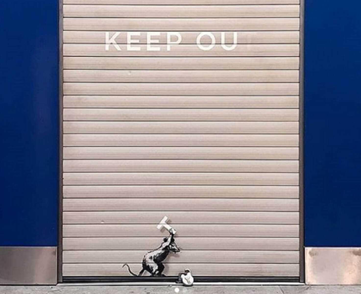Το νέο έργο του Banksy βρίσκεται σε μια πύλη αφίξεων ταξιδιωτών από την ΕΕ στο αεροδρόμιο Χίθροου, φέρει την επωνυμία «Keep Ou» και είναι μέρος της θερινής έκθεσης της Βασιλικής Ακαδημίας στο Λονδίνο.