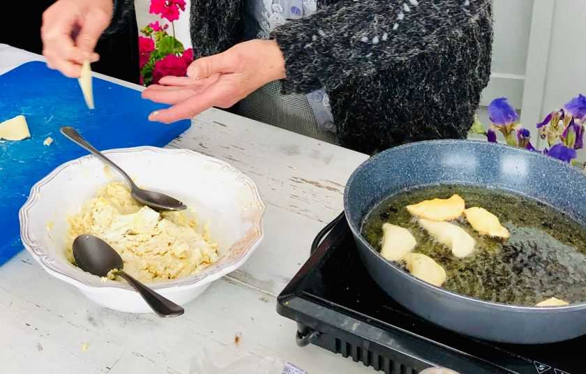 Πρόκειται για τηγανητά πιτάκια με ζύμη που πορτοκαλίζει αρωματικά και γέμιση από τυροβολιά. Τα πιτάκια σερβίρονται περιχυμένα με μέλι και πασπαλισμένα με κανελοζάχαρη και σουσάμι