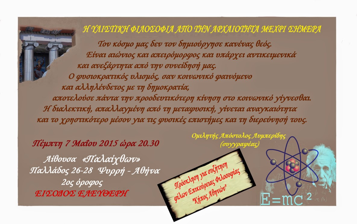 Όμως ας κάνουμε μια αναδρομή στο παρελθόν για να δούμε πώς άρχισε το επιχείρημα αυτό της υλιστικής φιλοσοφίας.