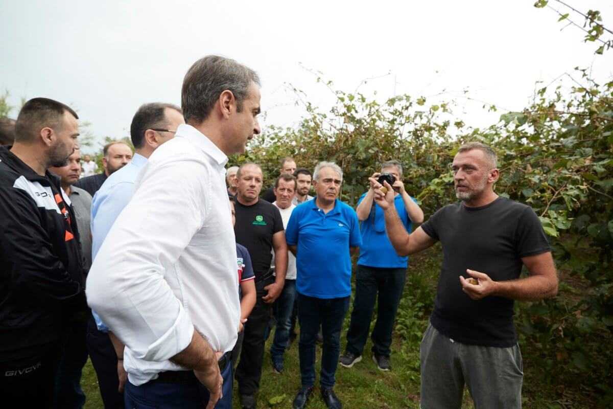 Οι παραγωγοί του ανέφεραν, επίσης, ότι τα δέντρα τους έχουν πάθει σοβαρή ζημιά λόγω του καιρού, με αποτέλεσμα να έχει επηρεαστεί το 20% της συνολικής παραγωγής τους. Επ’ αυτού ο κ. Μητσοτάκης υπογράμμισε πως «θα φροντίσουμε οι αποζημιώσεις σας από τα ακραία καιρικά φαινόμενα να είναι αναλογικές με την ζημιά που έχετε πάθει». Και πρόσθεσε πως «ο κανονισμός του ΕΛΓΑ είναι από τη δεκαετία του ‘50 και χρειάζεται δραστική τροποποίηση».