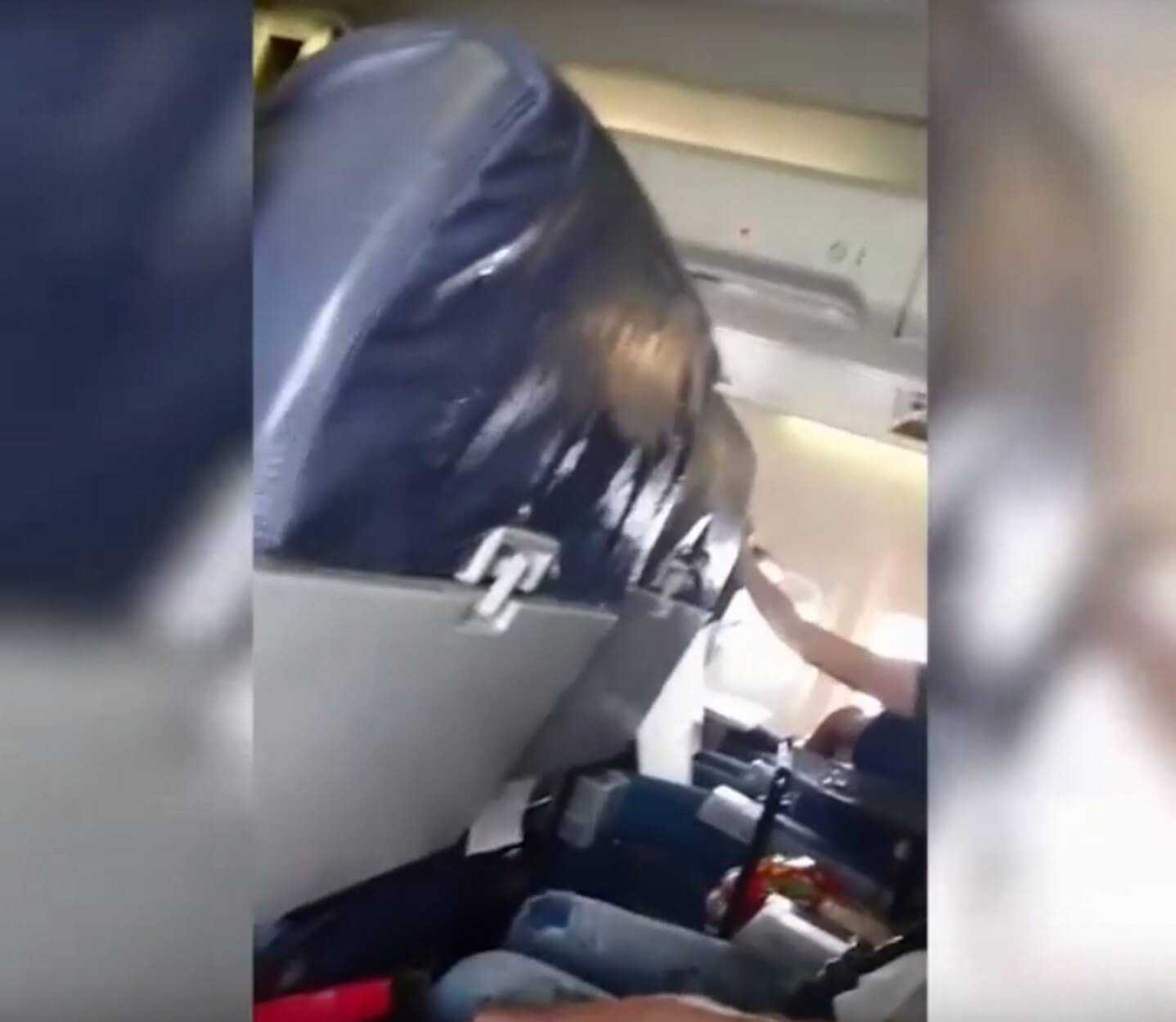 Ξαφνικά το αεροπλάνο ταρακουνιέται τόσο βίαια ώστε μια από τις αεροσυνοδούς – που βρισκόταν στον διάδρομο με το τρόλεϊ γεμάτο νερά, καφέδες και αναψυκτικά – κυριολεκτικά να «απογειώνεται».