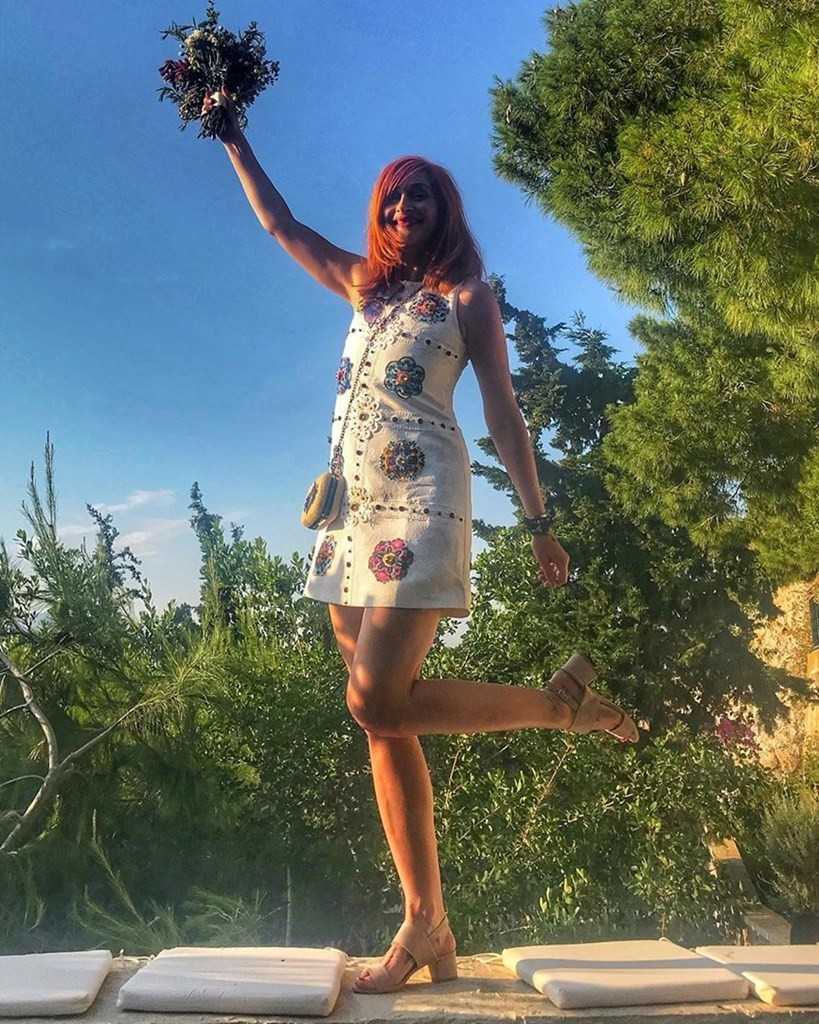 Ιδού και η φωτογραφία με τη Μαρία να κρατάει περήφανη και χαμογελαστή την ανθοδέσμη της νύφης Τζένης.