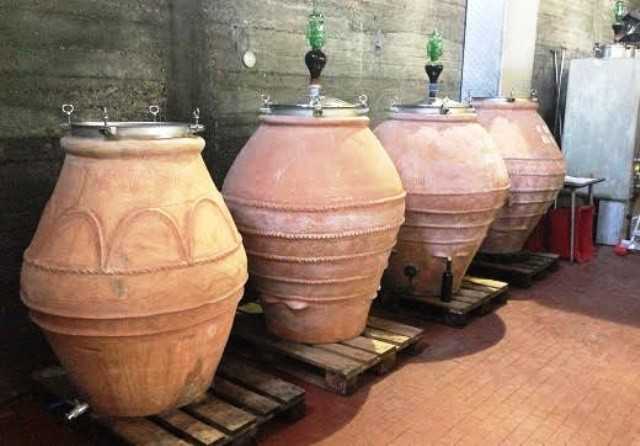 Τα αρχαιολογικά αρχεία δείχνουν ότι οι οινοπαραγωγοί σε ολόκληρη την Ιταλική Χερσόνησο και τη Σικελία μετέφεραν κρασί σε πήλινους αμφορείς – δηλαδή σε μικρά αγγεία από τερακότα με λαβές ακριβώς πάνω από τους ώμους – ήδη από την εποχή του Χαλκού. Είναι πιθανό οι οινοποιοί της εποχής εκείνης να έκαναν επίσης ζύμωση και παλαίωση σε εκείνα τα σκεύη. Αυτό το ιστορικό πλαίσιο ήταν στο μυαλό του Giusto Occhipinti, του συνιδιοκτήτη της Azienda Agricola COS στη Vittoria της Σικελίας, όταν άρχισε να χρησιμοποιεί αγγεία το 2000. «Εργαζόμαστε με 150 αμφορείς περίπου 400 λίτρων [ο καθένας]», λέει, «οπότε αυτό που κάνουμε είναι 150 μικρο-ζυμώσεις». Ενώ τα σκεύη που χρησιμοποιεί είναι πολύ μεγαλύτερα από εκείνα που χρησιμοποιούνταν στη ρωμαϊκή εποχή, ο Occhipinti εξακολουθεί να τα ονομάζει αμφορείς. Το πρόγραμμα που απαιτεί έντονη εργασία τον αναγκάζει να παρακολουθεί εκ του σύνεγγυς τις αποχρώσεις του κάθε οικοσυστήματος ζύμωσης.