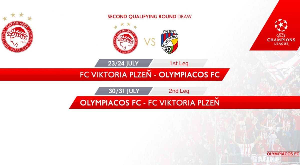 Από την Τσεχία θα ξεκινήσει το φετινό ευρωπαϊκό ταξίδι του Ολυμπιακού, αφού οι “ερυθρόλευκοι” κληρώθηκαν να αντιμετωπίσουν την Βικτόρια Πλζεν στο δεύτερο προκριματικό γύρο του Champions League.