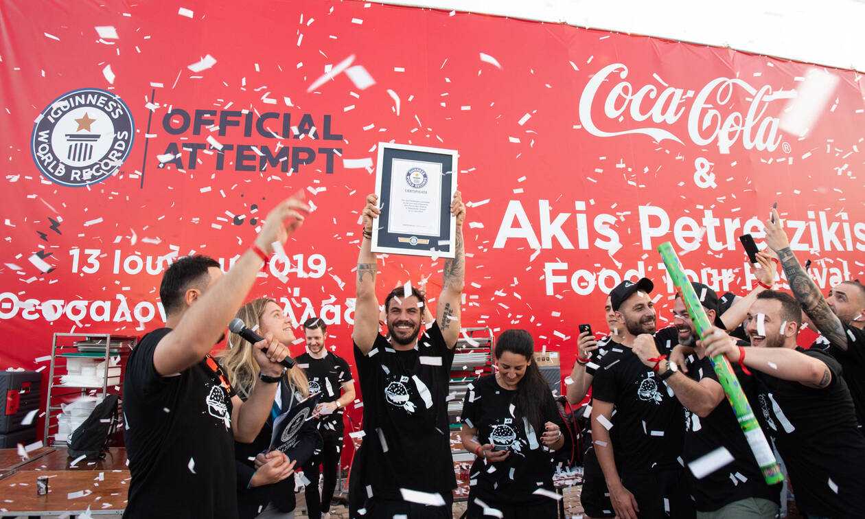 Στο πλαίσια του Coca–Cola & Akis Food Tour Festival, η Coca–Cola και ο Άκης ένωσαν τις δυνάμεις τους και ταξίδεψαν στην Θεσσαλονίκη, βάζοντας ως στόχο, την κατάρριψη του ρεκόρ των GUINNESS WORLD RECORDS™ για τα περισσότερα hamburgers που έχουν στηθεί ποτέ σε μία ώρα. Το βανάκι στάθμευσε στο λιμάνι της πόλης την Πέμπτη 13 Ιουνίου από τις εξίμισι το απόγευμα έως τις έντεκα το βράδυ και υποδέχτηκε το πλήθος που ανέμενε με αγωνία τις εξελίξεις και το εκπληκτικό φαγητό. Και ναι, τα κατάφερε! Ο Άκης με την ομάδα του και την υποστήριξη της Coca–Cola, έστησε 3.378 hamburgers στο διάστημα μίας ώρας!