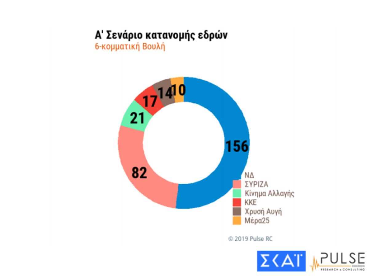 Στο σενάριο της 6κομματικής βουλής η εκτίμηση των εδρών έχει ως εξής: