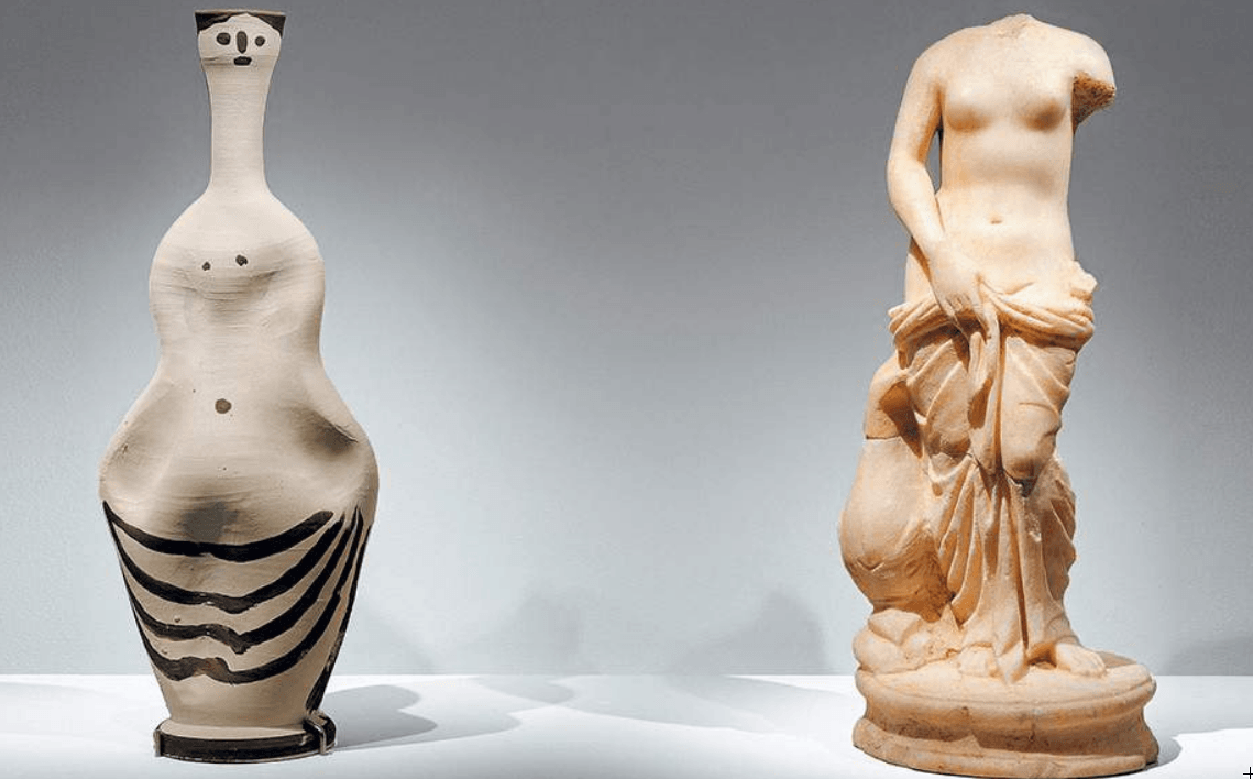 Η αλήθεια είναι πως η έκθεση με τίτλο «Πικάσο και Αρχαιότητα. Γραμμή και πηλός», που διοργανώνεται στο μουσείο στο πλαίσιο της σειράς «Θεϊκοί Διάλογοι», περιλαμβάνει κεραμικά και σχέδια του εμβληματικού καλλιτέχνη τα οποία συνομιλούν με αρχαία έργα με τρόπο πραγματικά εντυπωσιακό. Δεν είναι μόνον η ομοιότητα των μορφών, η θεματική συνάφεια, η σχεδιαστική δεινότητα που φέρνει κοντά τους δύο μακρινούς κόσμους. Τα στοιχεία που τονίζουν την εκλεκτική συγγένειά τους είναι ο πλούτος της έμπνευσης και η πνοή της δημιουργίας. «Για εμένα δεν υπάρχει παρελθόν ή μέλλον στην τέχνη. Εάν ένα έργο τέχνης δεν μπορεί να ζει πάντα στο παρόν, δεν πρέπει να το θεωρούμε καθόλου ως τέτοιο», έλεγε ο Πάμπλο Πικάσο.