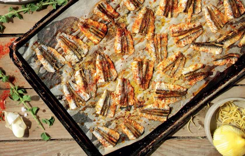 Στρώνουμε χαρτί κουζίνας σε μια πιατέλα, απλώνουμε τον γαύρο, τον αλατίζουμε και τον βάζουμε στο ψυγείο για 1 ώρα. Προθερμαίνουμε τον φούρνο στους 220°C στον αέρα. Καλύπτουμε με λαδόκολλα το ταψί του φούρνου και αδειάζουμε τα φιλέτα σε ένα βουναλάκι, στο κέντρο του ταψιού. Τα περιχύνουμε με το ελαιόλαδο, πασπαλίζουμε με τις πάπρικες, τη ρίγανη, το σκόρδο, αλάτι, πιπέρι και ανακατεύουμε πολύ καλά. Απλώνουμε τα φιλέτα σε μονή στρώση, σε όλη την επιφάνεια του ταψιού. Ψήνουμε στον καυτό φούρνο για 4-6 λεπτά, ανάλογα με το μέγεθος. Δεν τα γυρίζουμε. Βγάζουμε το ταψί από τον φούρνο, σκορπίζουμε το ξύσμα, περιχύνουμε με τον χυμό και σερβίρουμε με ζεστό ψωμί. Αντί ψωμιού, μπορούμε να αλείψουμε ζεστές αραβικές πίτες με ταραμοσαλάτα, να προσθέσουμε ντοματίνια, φετάκια κρεμμυδιού, κάππαρη, μαϊντανό, ελαιόλαδο, γαύρο, ξύσμα και χυμό λεμονιού και να τυλίξουμε την πίτα σε ρολό.