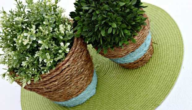 Αναβαθμίστε τις πήλινες γλάστρες σας με σχοινί Αν βαρεθήκατε τις πήλινες γλάστρες σας τότε μπορείτε εύκολα να τις ανανεώσετε χρησιμοποιώντας απλώς λίγο σχοινί. Ξεκινήστε από το πάνω μέρος της γλάστρας και αρχίστε να κολλάτε το σχοινί με κόλλα σιλικόνης συνεχίζοντας προς τα κάτω. Αν θέλετε μπορείτε να βάψετε το κάτω μέρος της γλάστρας σας με πλαστικό χρώμα για να δώσετε μια έξτρα διακοσμητική πινελιά!