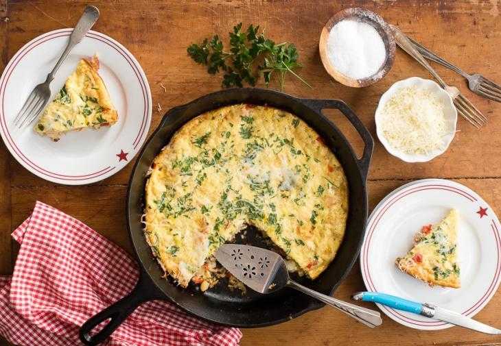 Η frittata σερβίρεται ζεστή ή κρύα, για πρωινό, μεσημεριανό ή βραδινό.