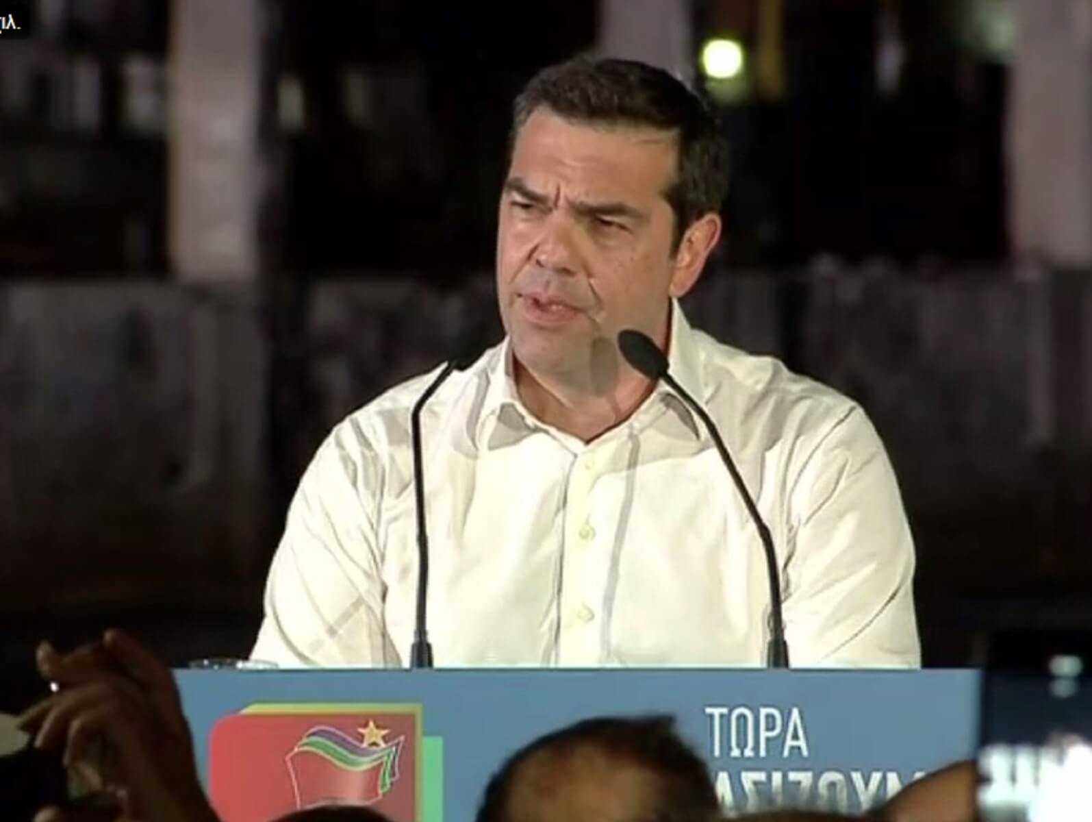 Ο κ. Τσίπρας είπε ότι ο κ. Μητσοτάκης ανησυχεί και γι’ αυτό έσπευσε να ανασύρει «από τα συρτάρια του άλλο έναν εκβιασμό, ένα παραμύθι με Δράκο, μπας και εκβιάσει τους ψηφοφόρους να τον ψηφίσουν», δηλαδή ότι αν δεν λάβει, όχι τη νίκη, αλλά τη «λευκή επιταγή», θα έχουμε και άλλες εκλογές, με απλή αναλογική, μέσα στο Δεκαπενταύγουστο. «Η Παναγιά μαζί μας, δηλαδή», σχολίασε ο πρωθυπουργός.