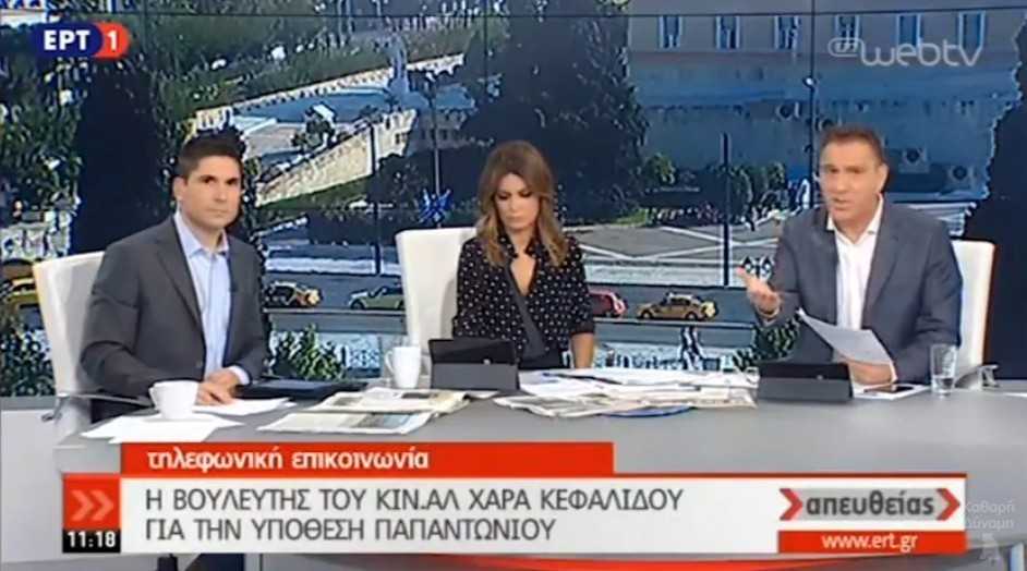 Οργισμένη παρέμβαση της βουλευτή της Δημοκρατικής Συμπαράταξης (Κίνημα Αλλαγής) Χαράς Κεφαλίδου στην εκπομπή της ΕΡΤ1 “Απευθείας”, με αφορμή αναφορά στο όνομά της από τον δημοσιογράφο Νίκο Μερτζάνη στη συζήτηση που προηγήθηκε για την υπόθεση Παπαντωνίου.