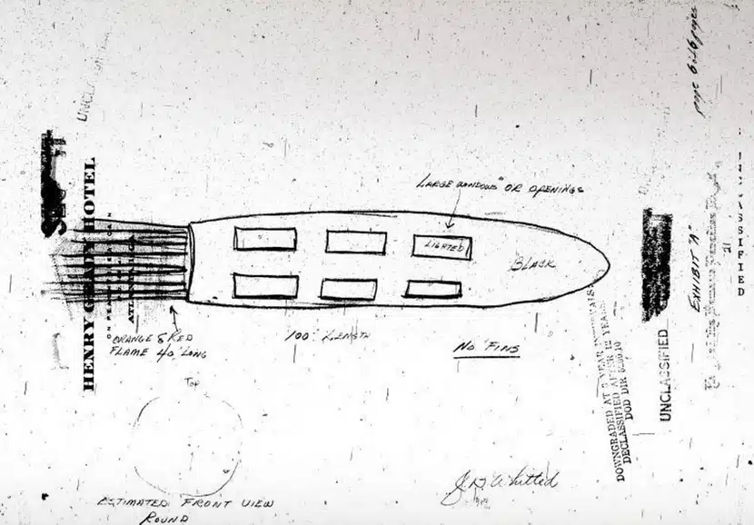 Και ο Whitted έκανε μια παρόμοια περιγραφή στην επίσημη δήλωσή του… «Το αντικείμενο είχε σχήμα πούρου και φαινόταν να έχει μήκος περίπου 100 ποδιών. Είχε δύο σειρές από παράθυρα, μια πάνω και μια κάτω. Τα παράθυρα ήταν πολύ μεγάλα και φαίνονταν τετράγωνα. Ήταν λευκά από το φως που φαινόταν να προκαλείται από κάποιου είδους ανάφλεξη. Ρώτησα τον κυβερνήτη Chiles τι ακριβώς είχαμε δει και μου είπε ότι δεν ήξερε».