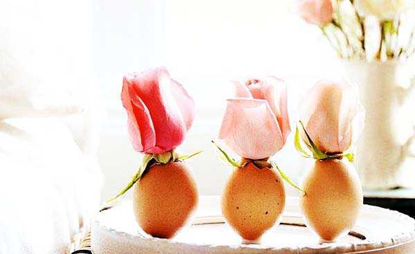 Την επόμενη φορά που θα κάνετε ομελέτα, διαλέξτε τα μεγαλύτερα αβγά που έχετε στο ψυγείο. Σπάστε τα προσεκτικά, έτσι ώστε το κάτω μέρος να είναι μεγαλύτερο. Πλύντε τα προσεκτικά μέσα έξω και τοποθετήστε τα σε αβγουλιέρες. Ζητήστε από τα παιδιά σας να κόψουν μικρά λουλουδάκια και βέλτε τα μέσα στα τσόφλια, γεμίζοντας μέχρι επάνω με νερό. Η συνέχεια εξαρτάται εξ ολοκλήρου από τη δική σας διακοσμητική… διάθεση!