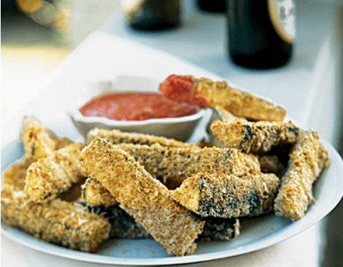Είναι η κατάλληλη εποχή για να βρεις μεγάλα κολοκυθάκια που θα σε βοηθήσουν να φτιάξεις στικ παρμεζάνας και τριμμένης φρυγανιάς. Συνόδευσέ τα με νόστιμη σος ντομάτας, πιπεριάς και πικάντικης πάπρικας!