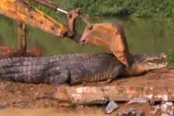 Έκπληκτοι οι κάτοικοι ενός χωριού της Σρι Λάνκα διαπίστωσαν την παρουσία ενός πελώριου εγκλωβισμένου κροκόδειλου μέσα σε παρακείμενο αρδευτικό κανάλι κι αμέσως ξεκίνησαν τις διαδικασίες για την ασφαλή απομάκρυνσή του.