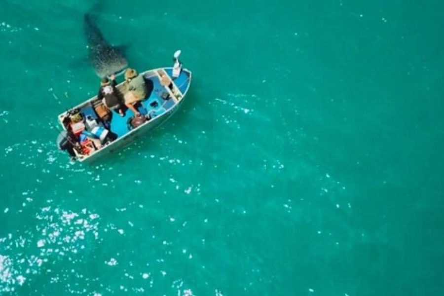 Όμως δεν υπήρχε τίποτα κακό σε αυτή τη προσέγγιση! Ο φαλαινοκαρχαρίας πρώτα αρχίζει να φέρνει βόλτες τη βάρκα, προτού να πλησιάσει πραγματικά! Τότε οι δυο ψαράδες άρχισαν να καταγράφουν την προσέγγιση του ζώου η οποία καταλήγει σε μια νέα φιλία!