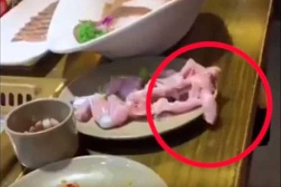 Προφανώς, το συγκεκριμένο έδινε την δυνατότητα στους πελάτες της να ψήσουν οι ίδιοι το φαγητό τους και έτσι της έφεραν, μεταξύ άλλων, ένα πιάτο με κομμάτια κρέας που δείχνουν να είναι από κοτόπουλο.