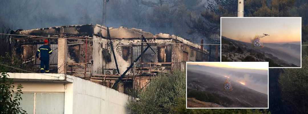 Σε ότι αφορά στις ζημιές στην Παιανία από όπου ξεκίνησε η πυρκαγιά, έχουν προκληθεί σοβαρές ζημιές σε ένα σπίτι και εξωτερικά σε άλλα τρία.