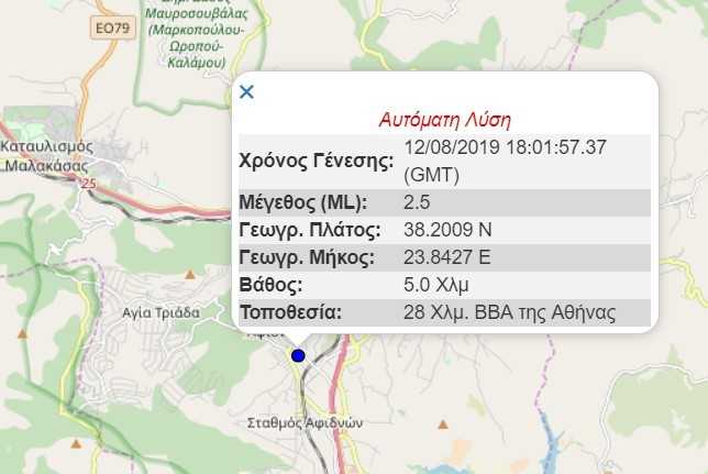 Το επίκεντρο της σεισμικής δόνησης  που σημειώθηκε στις 21:01 το βράδυ της Δευτέρας είχε επίκεντρο τις Αφίδνες, με τις πρώτες πληροφορίες να κάνουν λόγο για ένταση 2,5 Ρίχτερ και εστιακό βάθος 5 χλμ.