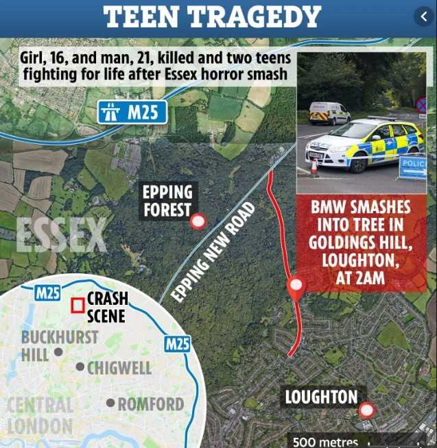 Μαζί με τον 21χρονο, έχασε τη ζωή του κι ένα 16χρονο κορίτσι, ενώ άλλα δύο κορίτσια 16 και 17 ετών που βρίσκονταν στο αυτοκίνητο, μεταφέρθηκαν στο νοσοκομείο και δίνουν μάχη για να κρατηθούν στη ζωή.