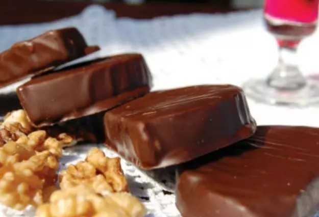 Βουτάμε μία μία καριόκα στην κουβερτούρα σοκολάτας και την απλώνουμε σε λαδόκολα.