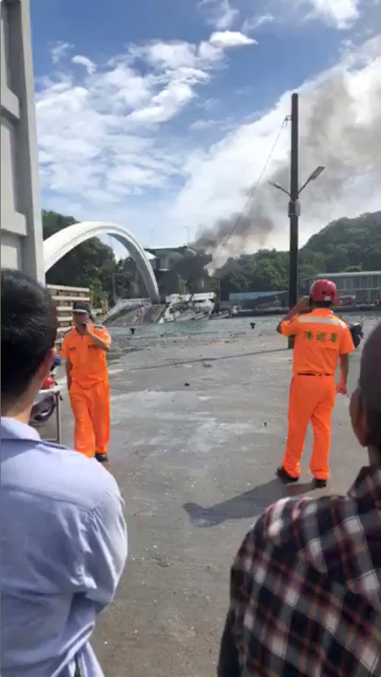 «Η γέφυρα κατέρρευσε περί τις 09:30, ενώ βρισκόταν πάνω της ένα βυτιοφόρο που μετέφερε καύσιμα, με αποτέλεσμα το όχημα να πάρει φωτιά», διευκρίνισε η Σι Ι-τσουν, γραμματέας του δημάρχου. «Φοβόμαστε ότι κάποιοι αλιείς μπορεί να έχουν παγιδευτεί στα σκάφη».
