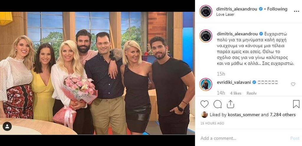 Συγκεκριμένα έγραψε στο instagram του: Ευχαριστώ πολύ για τα μηνύματα καλή αρχή να εχουμε να κάνουμε μια τέλεια παρέα εμείς και εσείς. Θέλω το σχόλιο σας για να γίνω καλύτερος και να μάθω κ αλλά… Σας ευχαριστώ.»!