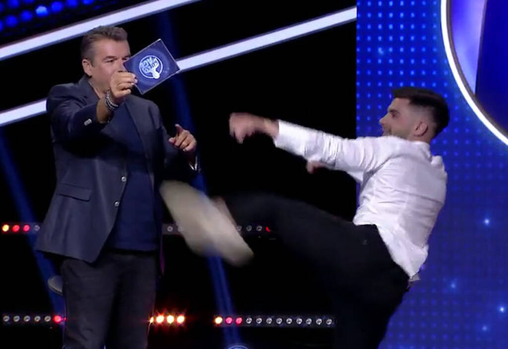 Ο Γιώργος Λιάγκας ζήτησε από παίκτη που συμμετείχε και ο οποίος ασχολείται με το kick boxing να κάνει μία κίνηση του αθλήματος και να φτάσει μία κάρτα με την κλωτσιά που θα έριχνε.